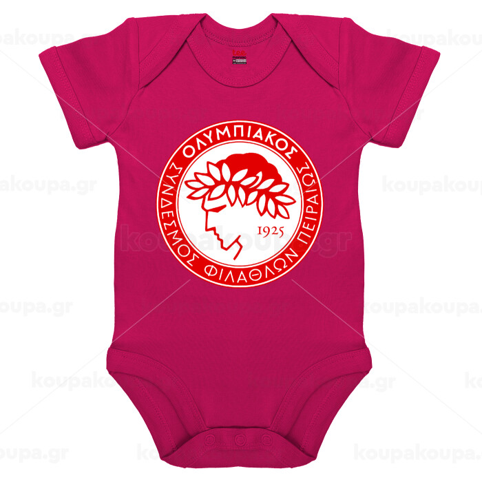 Ολυμπιακός, Βρεφικό φορμάκι μωρού, 0-18 μηνών, ΡΟΖ, 100% Organic Cotton, κοντομάνικο