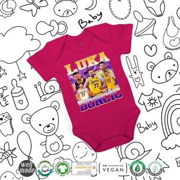 Luka Doncic Basketball , Βρεφικό φορμάκι μωρού, 0-18 μηνών, ΡΟΖ, 100% Organic Cotton, κοντομάνικο