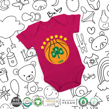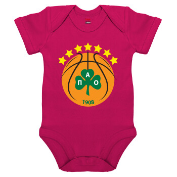 PAO BC, Βρεφικό φορμάκι μωρού, 0-18 μηνών, ΡΟΖ, 100% Organic Cotton, κοντομάνικο