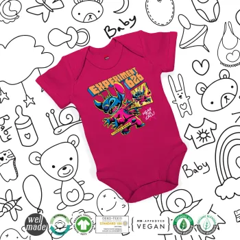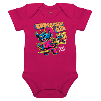 Stitch Experiment 626, Βρεφικό φορμάκι μωρού, 0-18 μηνών, ΡΟΖ, 100% Organic Cotton, κοντομάνικο