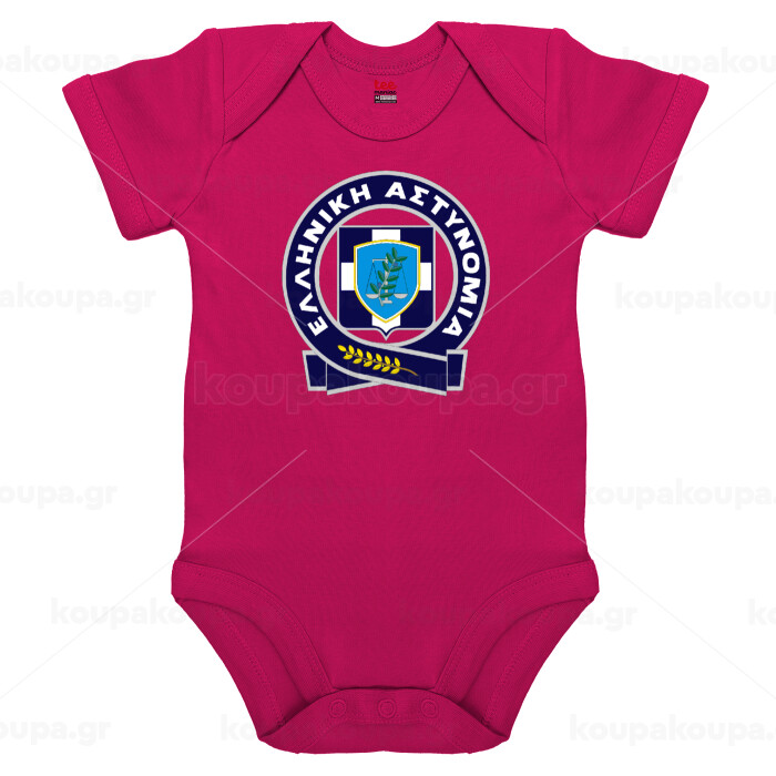 Ελληνική Αστυνομία, Βρεφικό φορμάκι μωρού, 0-18 μηνών, ΡΟΖ, 100% Organic Cotton, κοντομάνικο