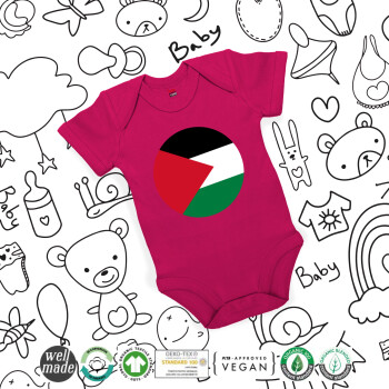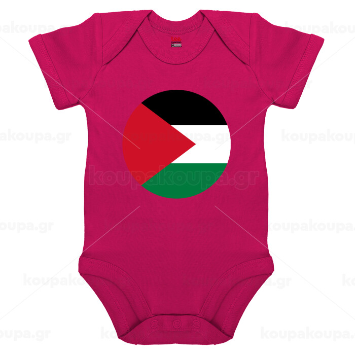 Palestine Flag, Βρεφικό φορμάκι μωρού, 0-18 μηνών, ΡΟΖ, 100% Organic Cotton, κοντομάνικο
