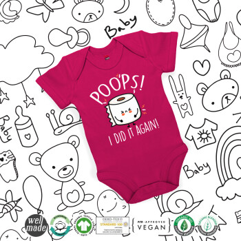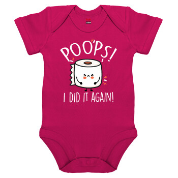 Poops!...I Did It Again, Βρεφικό φορμάκι μωρού, 0-18 μηνών, ΡΟΖ, 100% Organic Cotton, κοντομάνικο