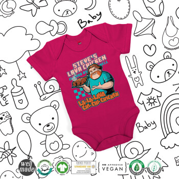 Steves Lava Chicken, Βρεφικό φορμάκι μωρού, 0-18 μηνών, ΡΟΖ, 100% Organic Cotton, κοντομάνικο