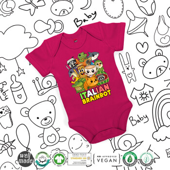 Italian Brainrot friends, Βρεφικό φορμάκι μωρού, 0-18 μηνών, ΡΟΖ, 100% Organic Cotton, κοντομάνικο