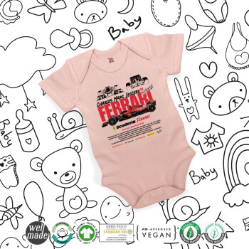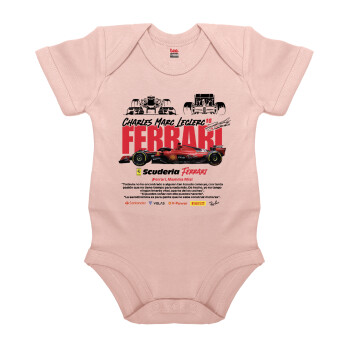 F1 Ferrari, Βρεφικό φορμάκι μωρού, 0-18 μηνών, ΡΟΖ POWDER, 100% Organic Cotton, κοντομάνικο