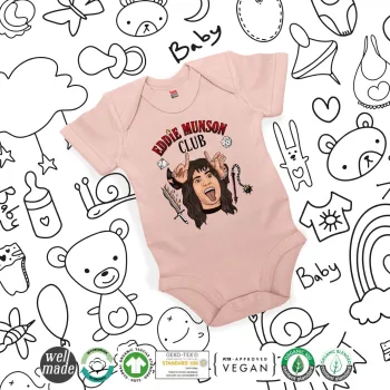Eddie Munson, Hellfire CLub, Stranger Things, Βρεφικό φορμάκι μωρού, 0-18 μηνών, ΡΟΖ POWDER, 100% Organic Cotton, κοντομάνικο