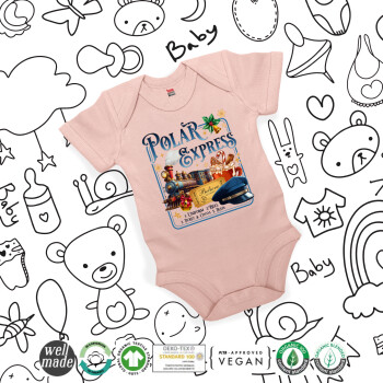 The Polar Express, Βρεφικό φορμάκι μωρού, 0-18 μηνών, ΡΟΖ POWDER, 100% Organic Cotton, κοντομάνικο