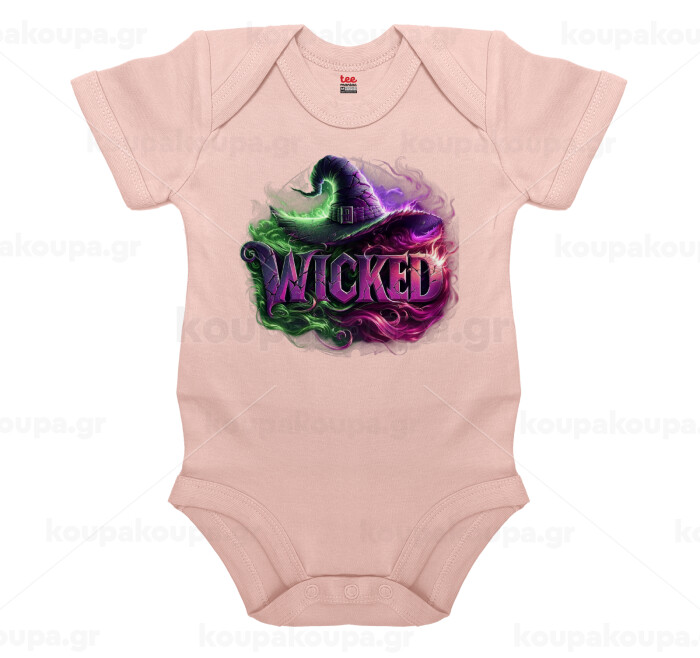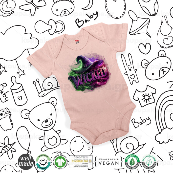 Wicked, Βρεφικό φορμάκι μωρού, 0-18 μηνών, ΡΟΖ POWDER, 100% Organic Cotton, κοντομάνικο