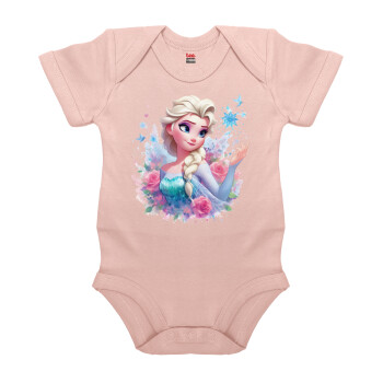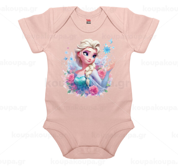 Elsa Princess, Βρεφικό φορμάκι μωρού, 0-18 μηνών, ΡΟΖ POWDER, 100% Organic Cotton, κοντομάνικο