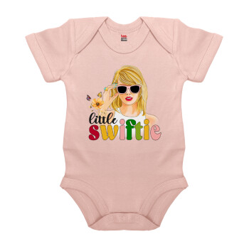 Little Swiftie, Βρεφικό φορμάκι μωρού, 0-18 μηνών, ΡΟΖ POWDER, 100% Organic Cotton, κοντομάνικο