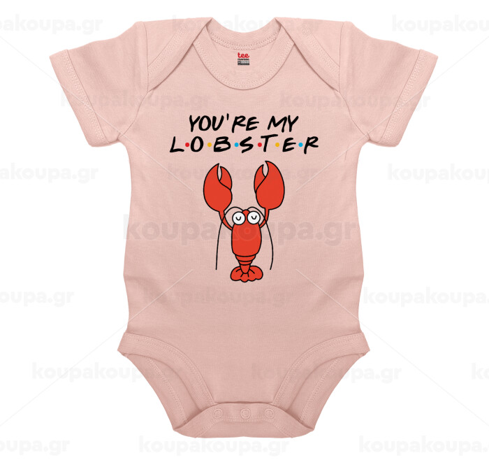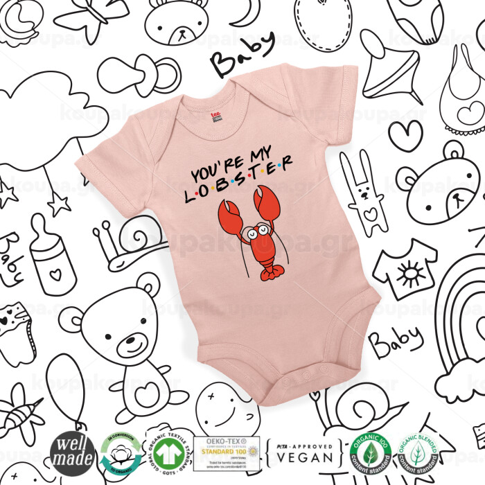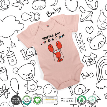 Friends you're my lobster, Βρεφικό φορμάκι μωρού, 0-18 μηνών, ΡΟΖ POWDER, 100% Organic Cotton, κοντομάνικο