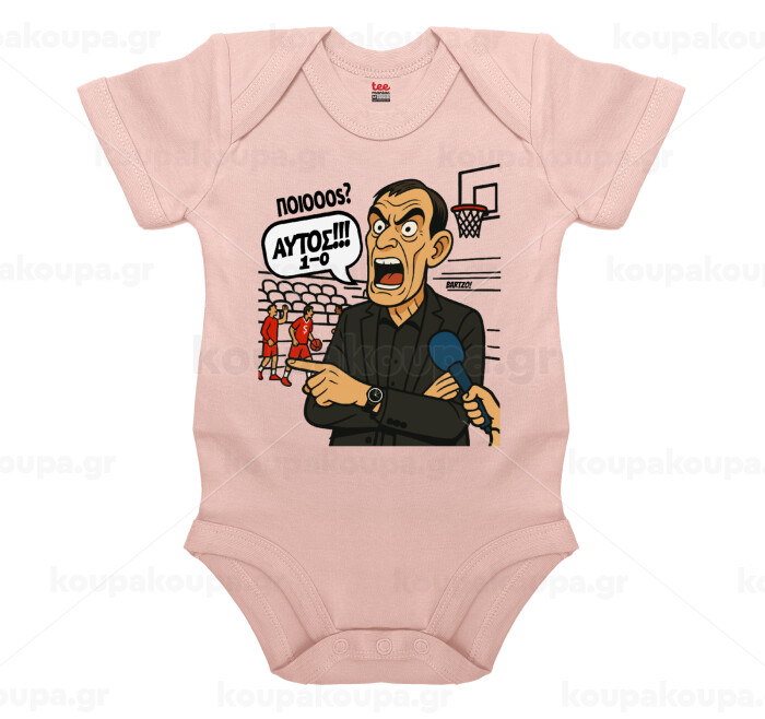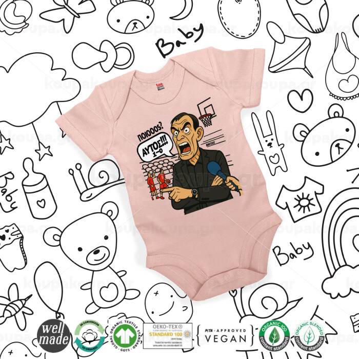 Μπαρτζό, Ποιος? Αυτός!!! 1-0, Βρεφικό φορμάκι μωρού, 0-18 μηνών, ΡΟΖ POWDER, 100% Organic Cotton, κοντομάνικο