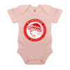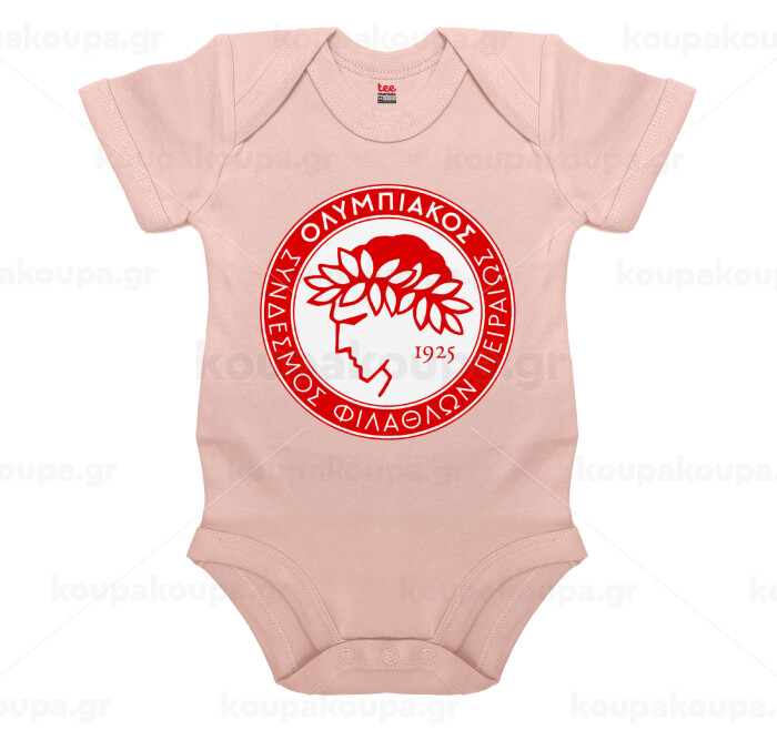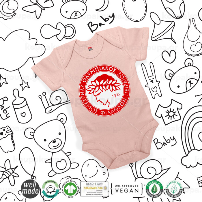 Ολυμπιακός, Βρεφικό φορμάκι μωρού, 0-18 μηνών, ΡΟΖ POWDER, 100% Organic Cotton, κοντομάνικο