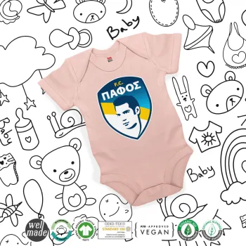 Πάφος FC, Βρεφικό φορμάκι μωρού, 0-18 μηνών, ΡΟΖ POWDER, 100% Organic Cotton, κοντομάνικο