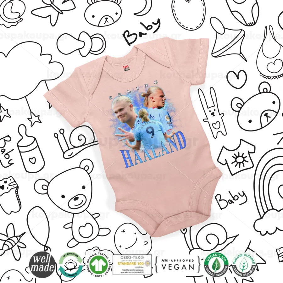 Erling Haaland, Βρεφικό φορμάκι μωρού, 0-18 μηνών, ΡΟΖ POWDER, 100% Organic Cotton, κοντομάνικο
