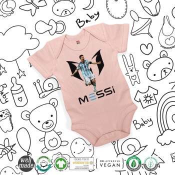 Lionel Messi, Βρεφικό φορμάκι μωρού, 0-18 μηνών, ΡΟΖ POWDER, 100% Organic Cotton, κοντομάνικο