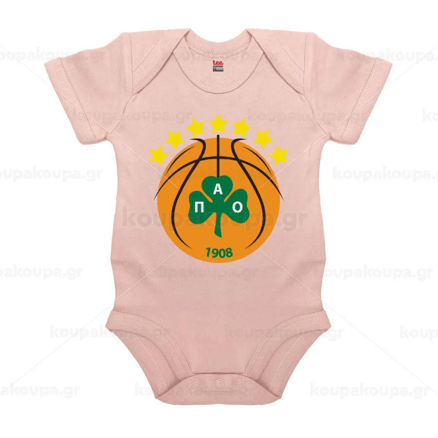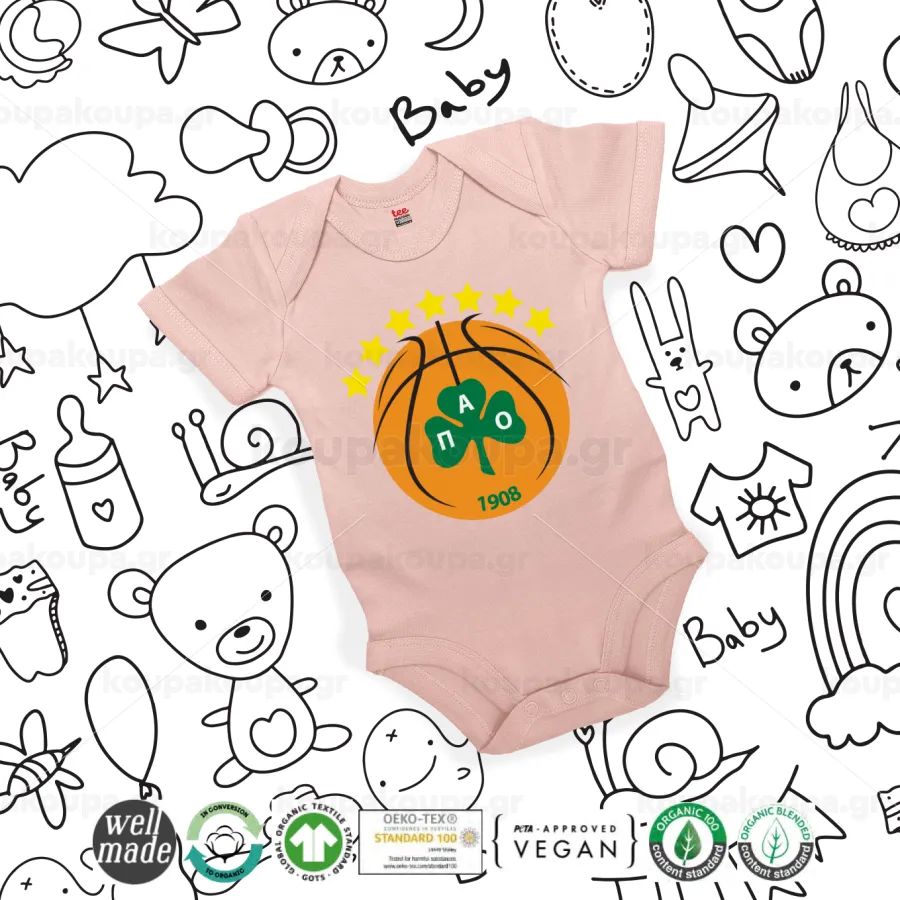 PAO BC, Βρεφικό φορμάκι μωρού, 0-18 μηνών, ΡΟΖ POWDER, 100% Organic Cotton, κοντομάνικο