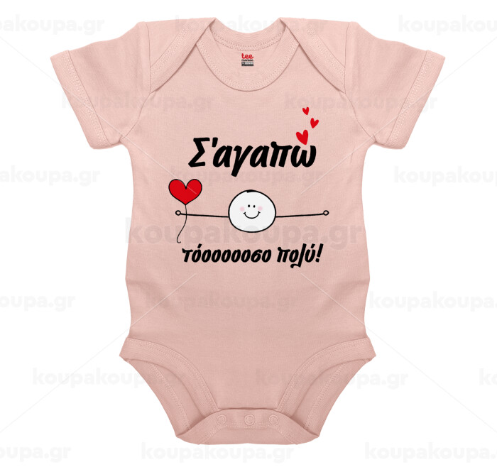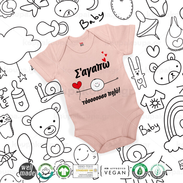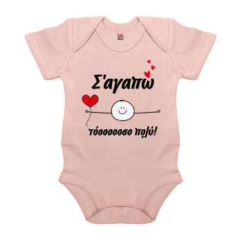Σ΄αγαπώ τόοοοσο πολύ (Αγόρι)!!!, Βρεφικό φορμάκι μωρού, 0-18 μηνών, ΡΟΖ POWDER, 100% Organic Cotton, κοντομάνικο