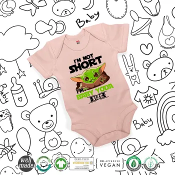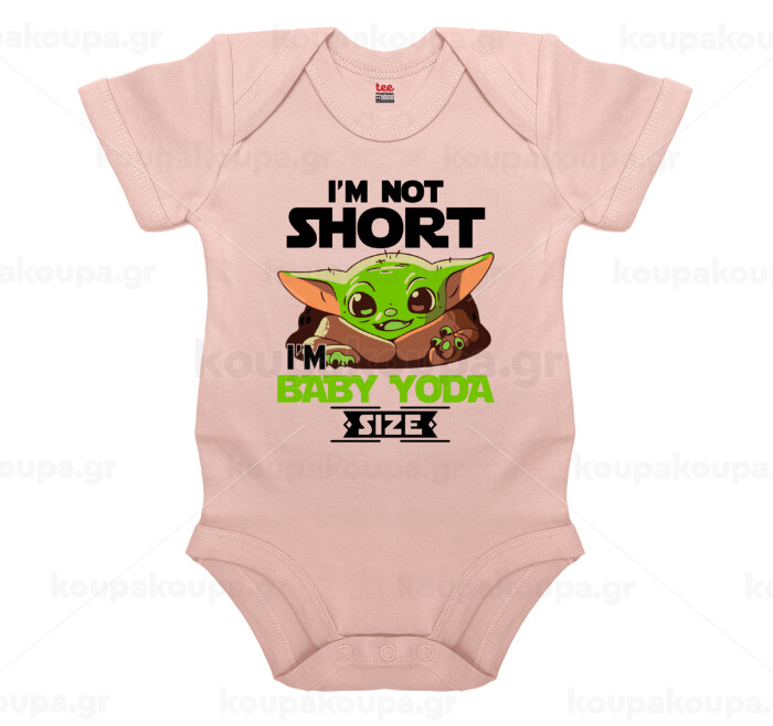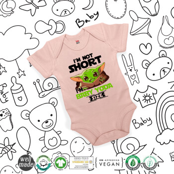 I'm not short, i'm Baby Yoda size, Βρεφικό φορμάκι μωρού, 0-18 μηνών, ΡΟΖ POWDER, 100% Organic Cotton, κοντομάνικο