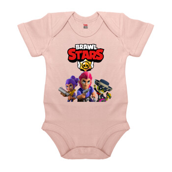 Brawl Stars Blue, Βρεφικό φορμάκι μωρού, 0-18 μηνών, ΡΟΖ POWDER, 100% Organic Cotton, κοντομάνικο