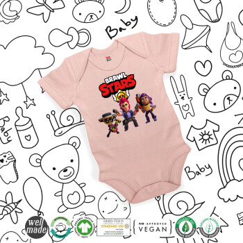 Brawl Stars Desert, Βρεφικό φορμάκι μωρού, 0-18 μηνών, ΡΟΖ POWDER, 100% Organic Cotton, κοντομάνικο