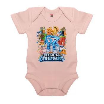 Steal a Brainrot Six Seven, Βρεφικό φορμάκι μωρού, 0-18 μηνών, ΡΟΖ POWDER, 100% Organic Cotton, κοντομάνικο