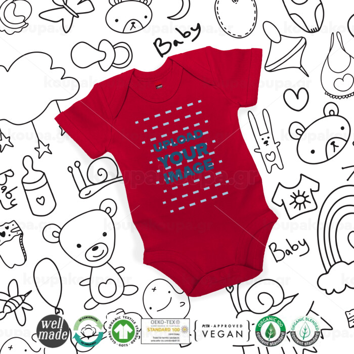 Fabric Weight: 200 g/m²Material: 100% Organic Cotton, ring-spun and combed for a soft textureTreatment: Pre-washed to prevent shrinkageStyle: American-style bodysuit for easy applicationDetails: Rib-knit cuffs for better fitFasteners: 3 nickel-free buttons at the bottom for easy diaper changes, color matched to the fabric
