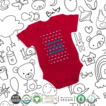 Upload your logo, Βρεφικό φορμάκι μωρού, ΚΟΚΚΙΝΟ, 100% Organic Cotton, κοντομάνικο