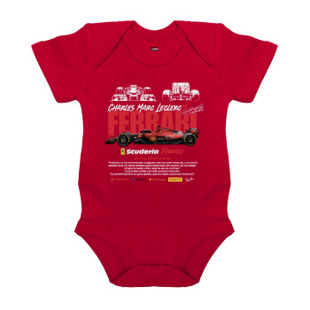 F1 Ferrari, Βρεφικό φορμάκι μωρού, ΚΟΚΚΙΝΟ, 100% Organic Cotton, κοντομάνικο