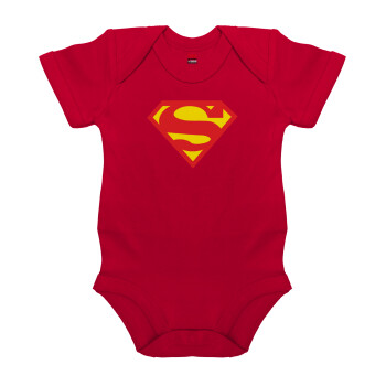 Superman, Βρεφικό φορμάκι μωρού, ΚΟΚΚΙΝΟ, 100% Organic Cotton, κοντομάνικο