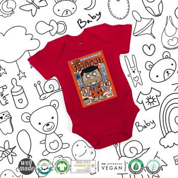 The flintstones, Βρεφικό φορμάκι μωρού, ΚΟΚΚΙΝΟ, 100% Organic Cotton, κοντομάνικο