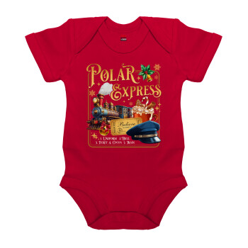 The Polar Express, Βρεφικό φορμάκι μωρού, ΚΟΚΚΙΝΟ, 100% Organic Cotton, κοντομάνικο