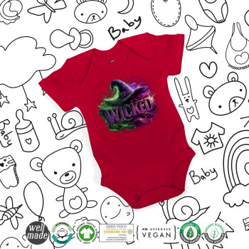 Wicked, Βρεφικό φορμάκι μωρού, ΚΟΚΚΙΝΟ, 100% Organic Cotton, κοντομάνικο