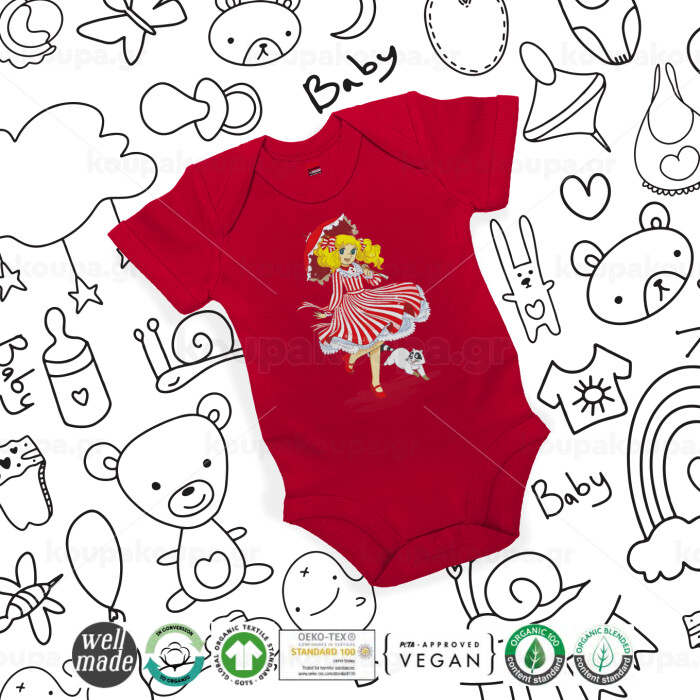 Candy, Βρεφικό φορμάκι μωρού, ΚΟΚΚΙΝΟ, 100% Organic Cotton, κοντομάνικο