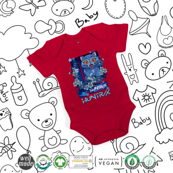 Huntrix Derpy the blue tiger, Βρεφικό φορμάκι μωρού, ΚΟΚΚΙΝΟ, 100% Organic Cotton, κοντομάνικο