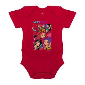 Huntrix Kpop Girls, Βρεφικό φορμάκι μωρού, ΚΟΚΚΙΝΟ, 100% Organic Cotton, κοντομάνικο