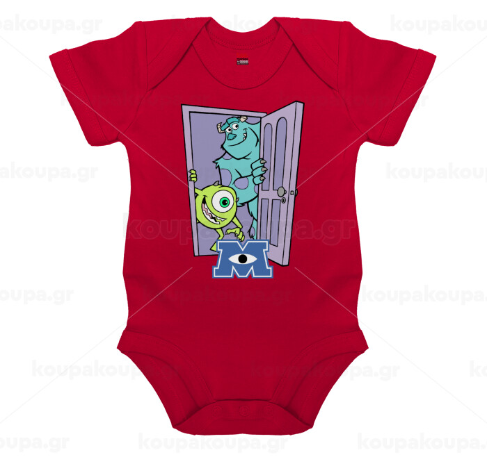 Monster inc, Βρεφικό φορμάκι μωρού, ΚΟΚΚΙΝΟ, 100% Organic Cotton, κοντομάνικο
