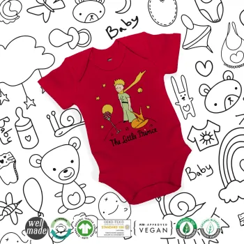The Little prince classic, Βρεφικό φορμάκι μωρού, ΚΟΚΚΙΝΟ, 100% Organic Cotton, κοντομάνικο