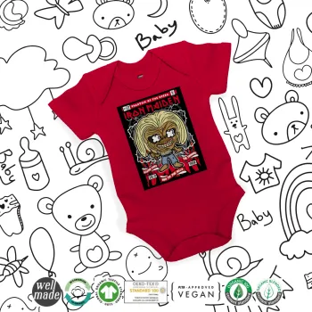 Iron maiden (eddie), Βρεφικό φορμάκι μωρού, ΚΟΚΚΙΝΟ, 100% Organic Cotton, κοντομάνικο