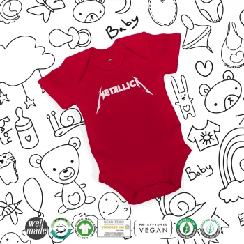 Metallica, Βρεφικό φορμάκι μωρού, ΚΟΚΚΙΝΟ, 100% Organic Cotton, κοντομάνικο