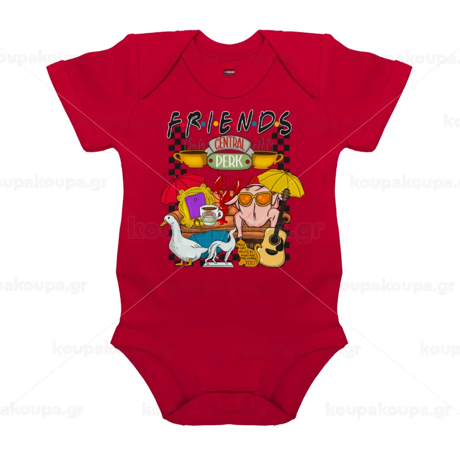 Friends, Βρεφικό φορμάκι μωρού, ΚΟΚΚΙΝΟ, 100% Organic Cotton, κοντομάνικο