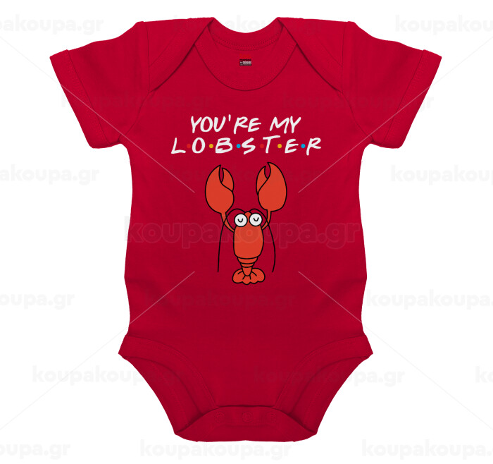 Friends you're my lobster, Βρεφικό φορμάκι μωρού, ΚΟΚΚΙΝΟ, 100% Organic Cotton, κοντομάνικο
