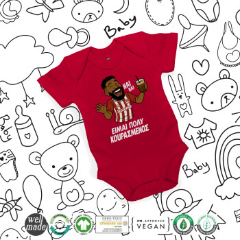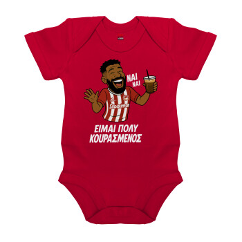 Ροντινέι, "ΠΟΛΥ ΚΟΥΡΑΣΜΕΝΟΣ", Βρεφικό φορμάκι μωρού, ΚΟΚΚΙΝΟ, 100% Organic Cotton, κοντομάνικο