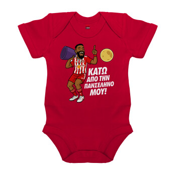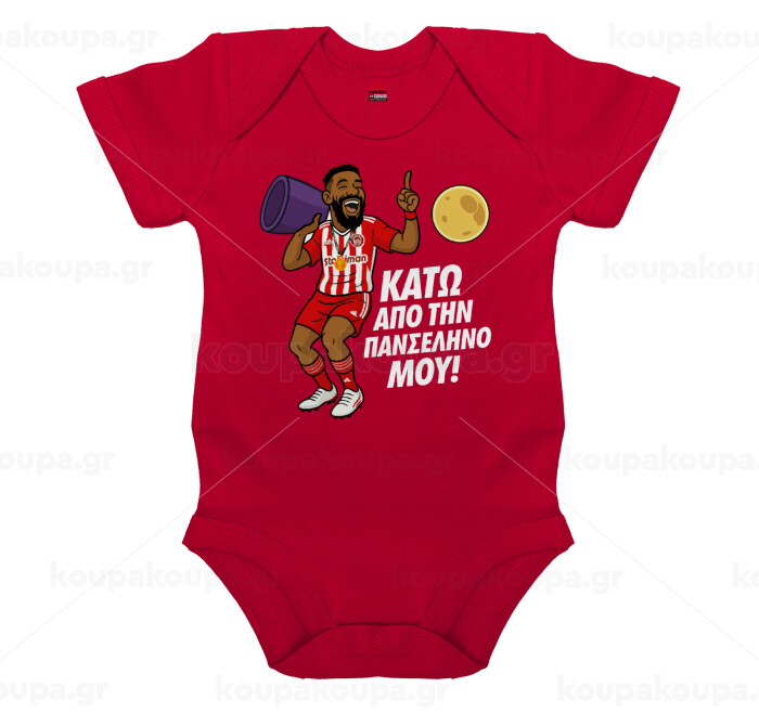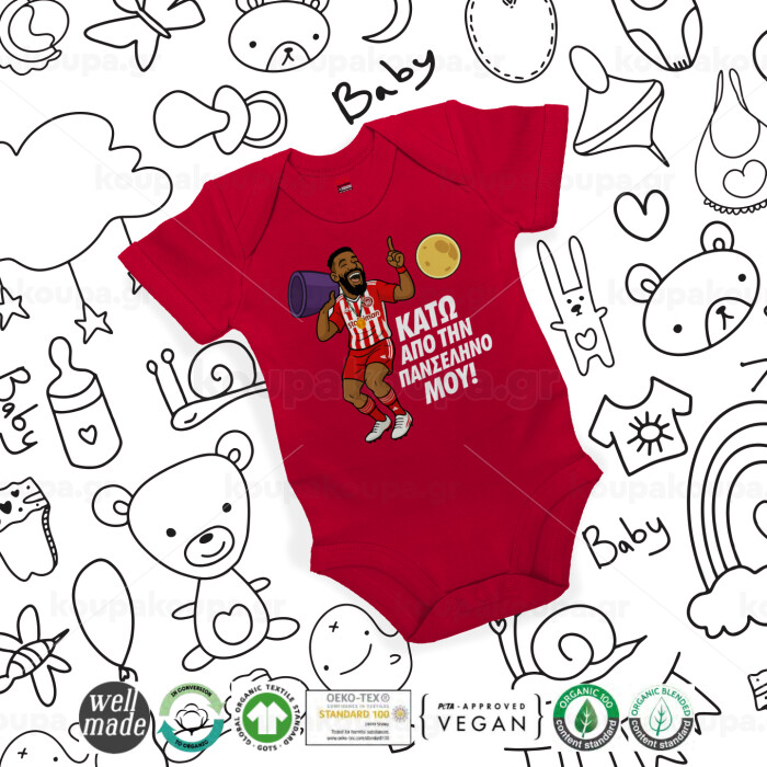Ροντινέι, "ΚΑΤΩ ΑΠΟ ΤΗΝ ΠΑΝΣΕΛΗΝΟ ΜΟΥ!", Βρεφικό φορμάκι μωρού, ΚΟΚΚΙΝΟ, 100% Organic Cotton, κοντομάνικο