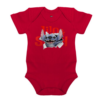 Stitch movie, Βρεφικό φορμάκι μωρού, ΚΟΚΚΙΝΟ, 100% Organic Cotton, κοντομάνικο