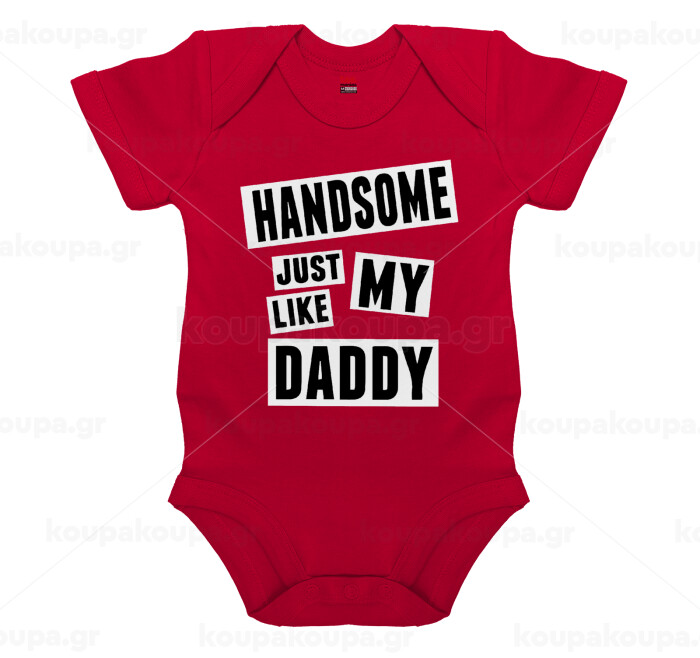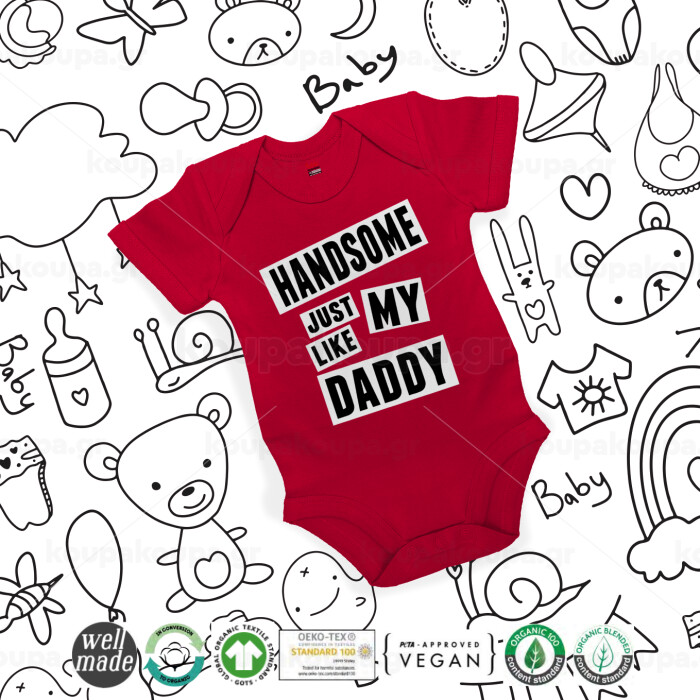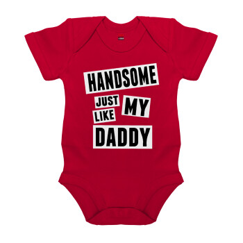 Handsome just like my Daddy, Βρεφικό φορμάκι μωρού, ΚΟΚΚΙΝΟ, 100% Organic Cotton, κοντομάνικο