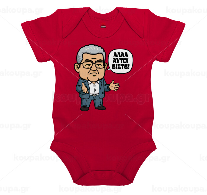 Κουτσούμπας, "Αλλά αυτοί είστε!", Βρεφικό φορμάκι μωρού, ΚΟΚΚΙΝΟ, 100% Organic Cotton, κοντομάνικο