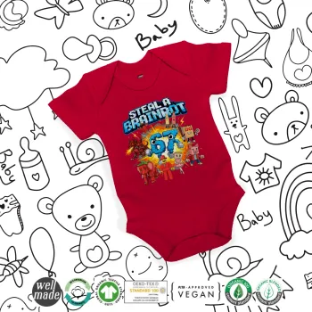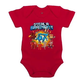 Steal a Brainrot 67 Roblox Style, Βρεφικό φορμάκι μωρού, ΚΟΚΚΙΝΟ, 100% Organic Cotton, κοντομάνικο