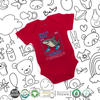 Tralalero Tralala, Βρεφικό φορμάκι μωρού, ΚΟΚΚΙΝΟ, 100% Organic Cotton, κοντομάνικο